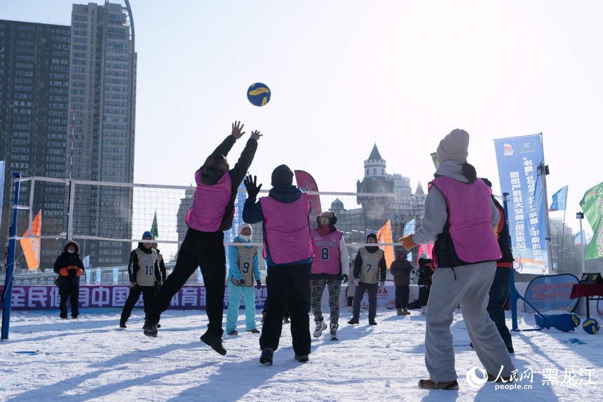 活动现场洋溢着全民健身的热情氛围,雪地气排球、亲子运动会、冰上龙舟、机器人足球赛等活动吸引了众多市民体验。